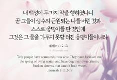 이스라엘 백성은 두 가지 악을 행했습니다. 하나는 생수의 근원이신 하나님을 버린 것이고, 또 다른 하나는 스스로 웅덩이를...Reply0 Views40